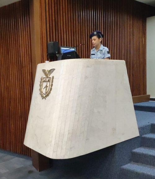 Aluna Fernanda do Colégio Cívico Militar Professor Segismundo Antunes Netto do 2º ano A, orientada pela Professora Ziza, apresentando seu projeto em Plenário sobre a Educação no Campo na Assembleia Legislativa do Paraná.