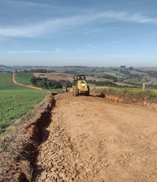 Máquinas do Codren fazem melhorias na estrada do Bairro Paradão.